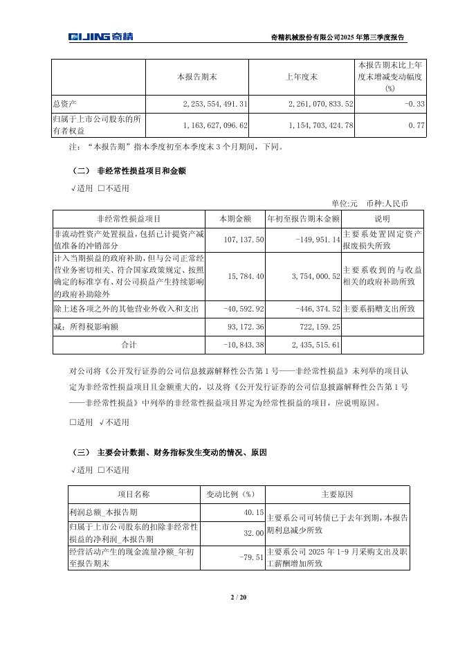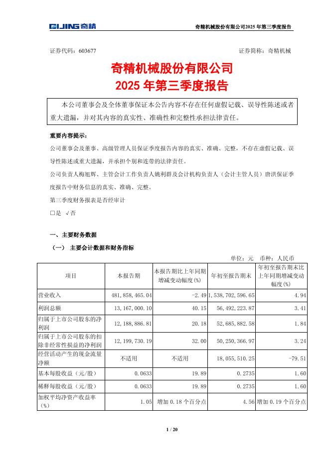 603677-奇精机械:2025年第三季度报告.pdf