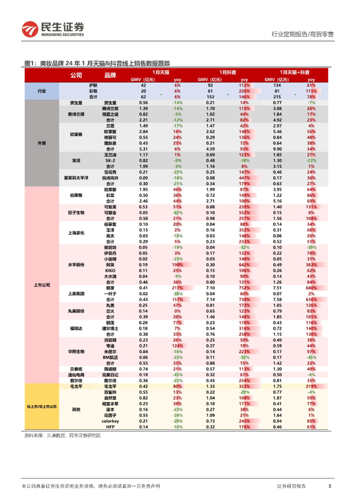 民生证券:零售周观点:2月中国零售业景气度环比小幅提升,1月淘系+抖音美妆大盘GMV同比+78%.pdf