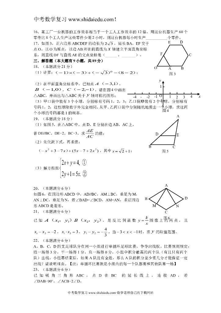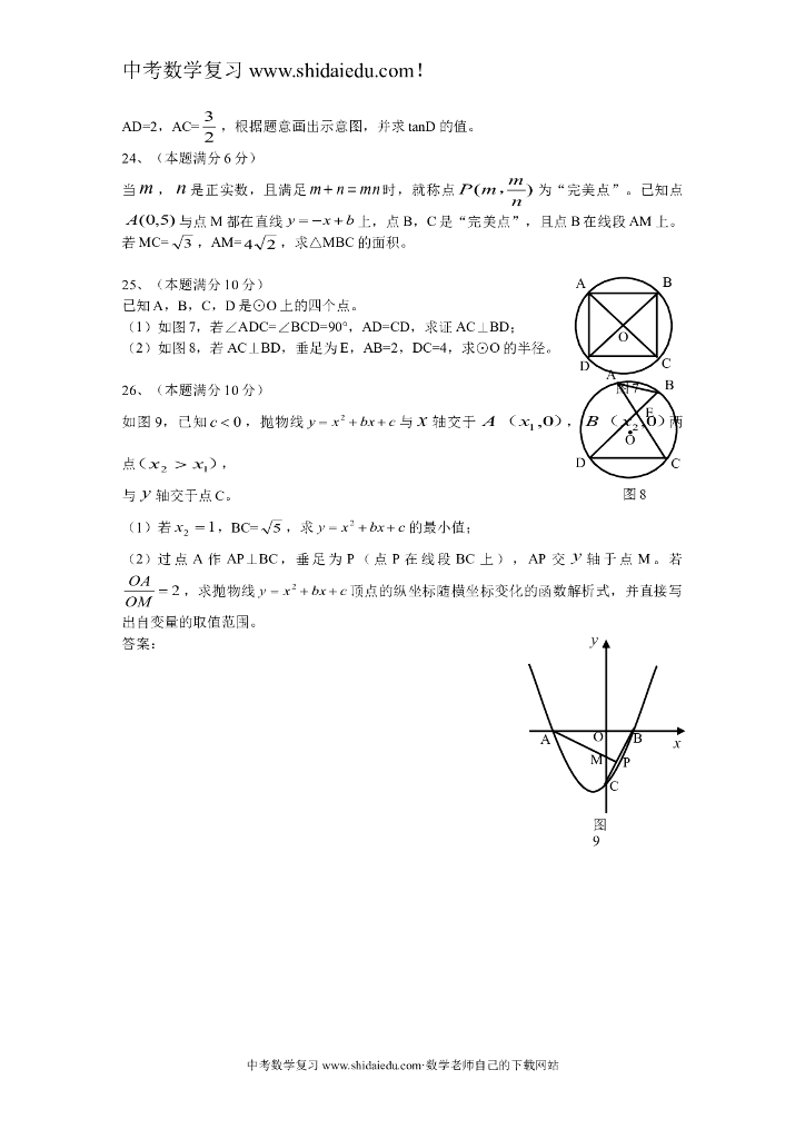 厦门中考数学试卷及答案.doc