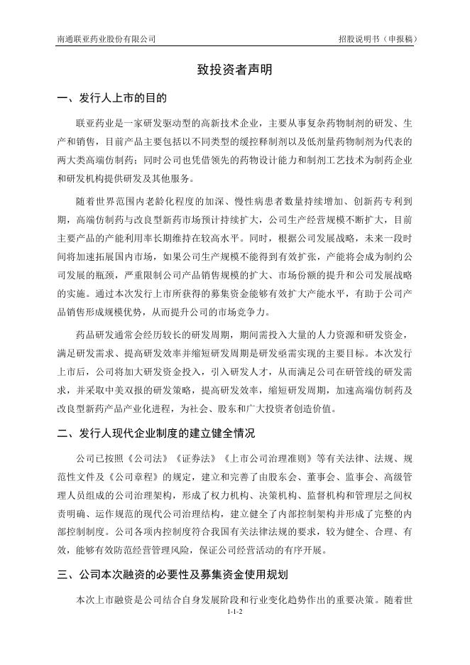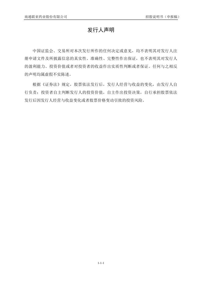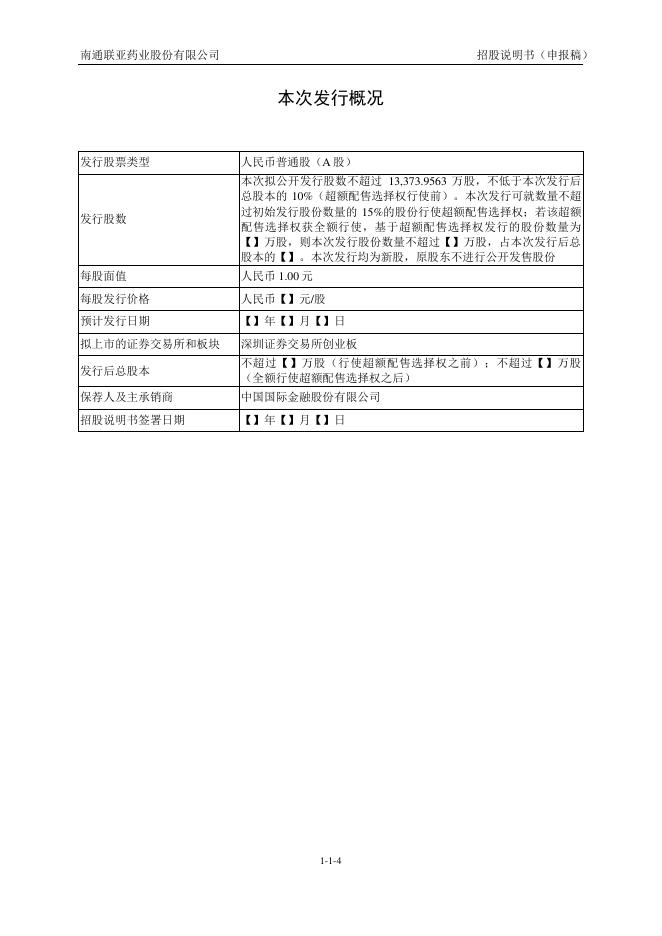 南通联亚药业股份有限公司创业板IPO上市招股说明书.pdf
