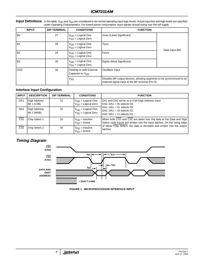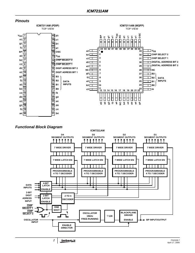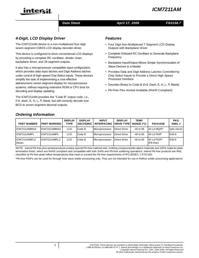 INTERSIL ICM7211AM 4-Digit, LCD Display Driver 数据手册.pdf