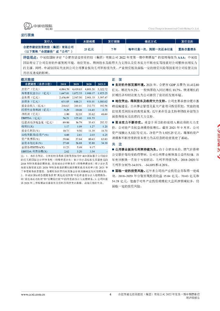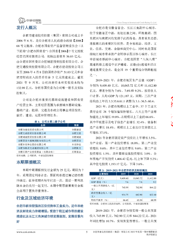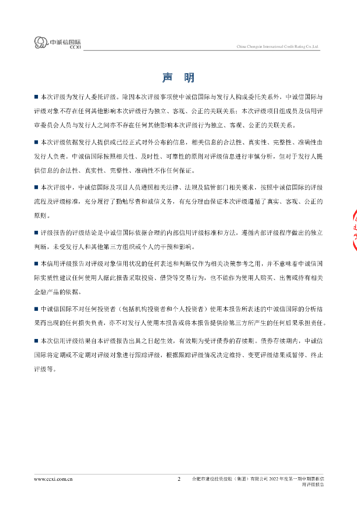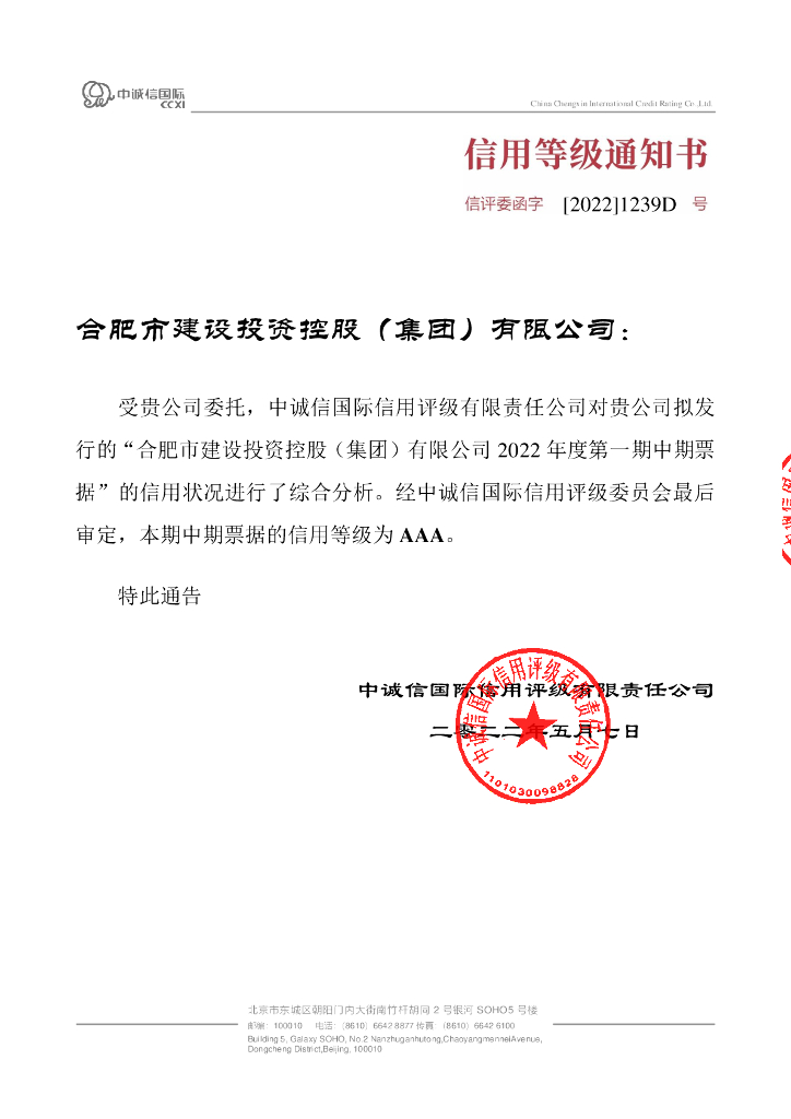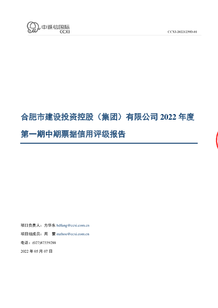 中诚信:合肥市建设投资控股(集团)有限公司2022年度第一期中期票据信用评级报告.pdf