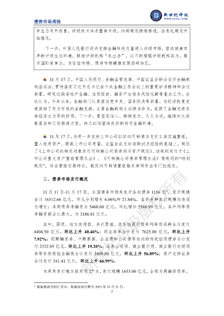 新世纪评级:债券发行规模和净融资额均环比增加——债券市场周报(20231111-1117).pdf