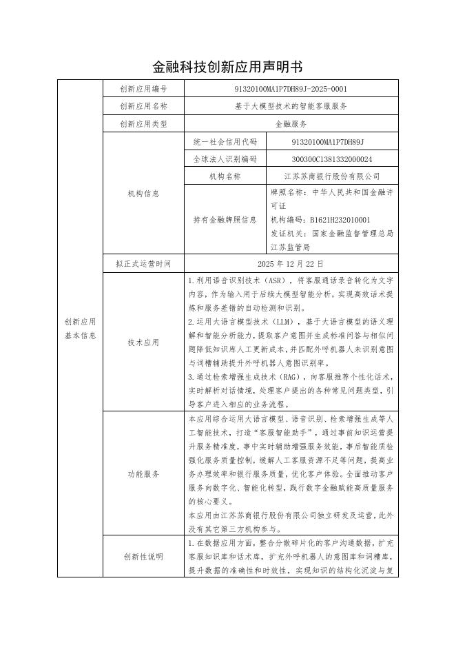金融科技创新应用声明书:基于大模型技术的智能客服服务.pdf