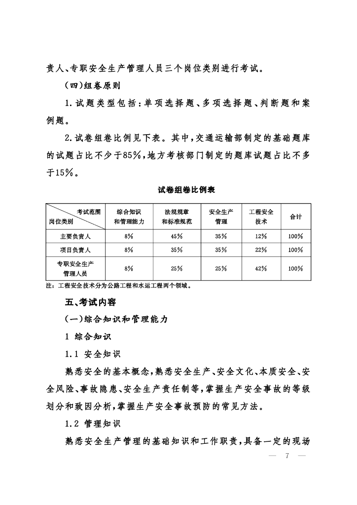 交通运输工程施工单位主要负责人、项目负责人和专职安全生产管理人员安全生产考试大纲.pdf