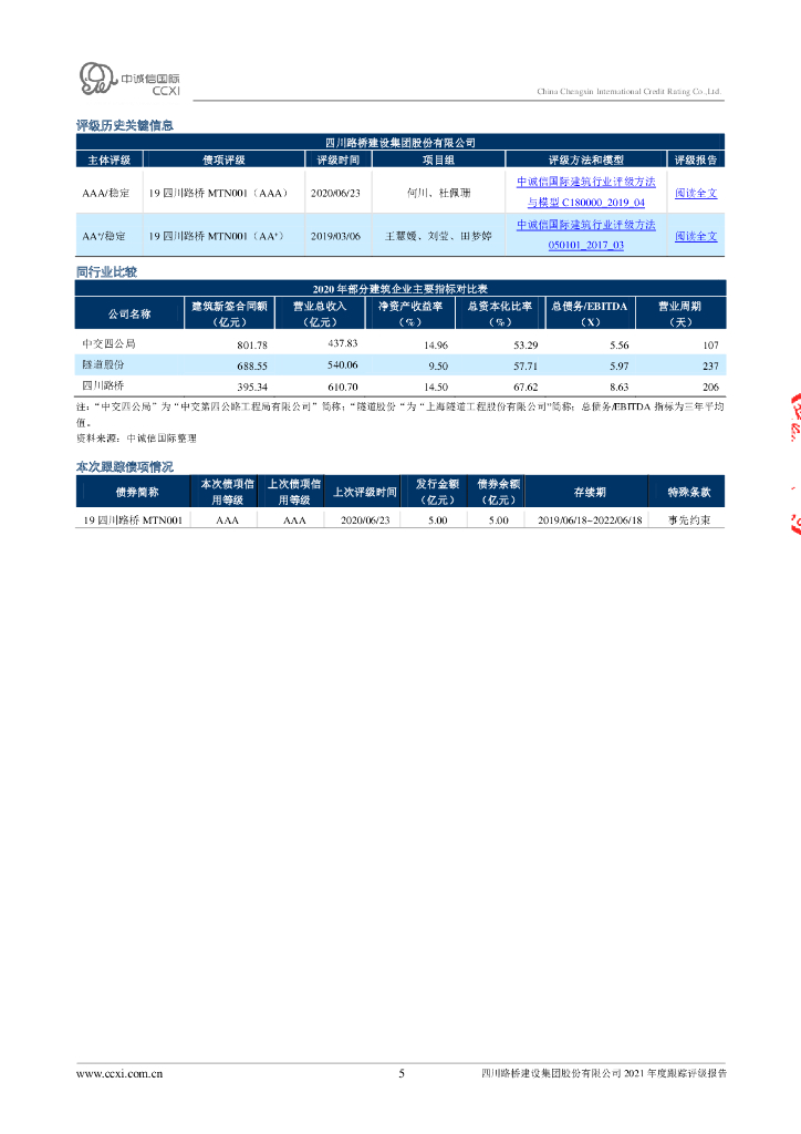 中诚信:四川路桥建设集团股份有限公司2021年度跟踪评级报告.pdf