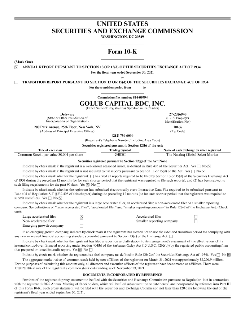 Golub Capital BDC Inc(GBDC)2021财年年度报告(英文版).pdf
