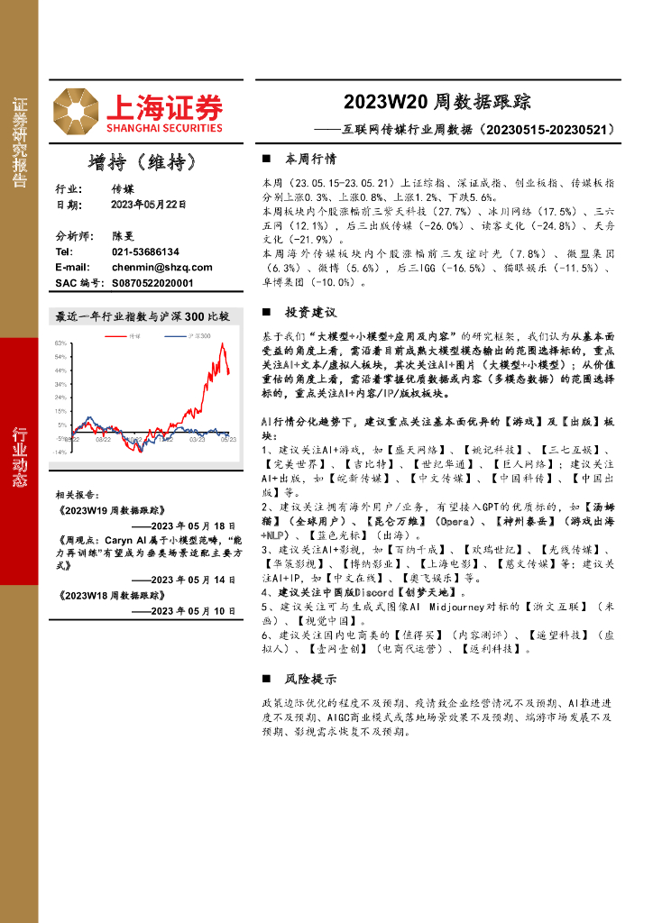 上海证券:互联网传媒行业周数据:2023W20周数据跟踪.pdf