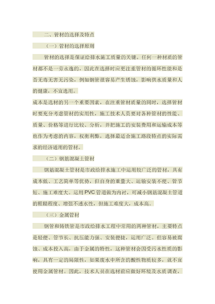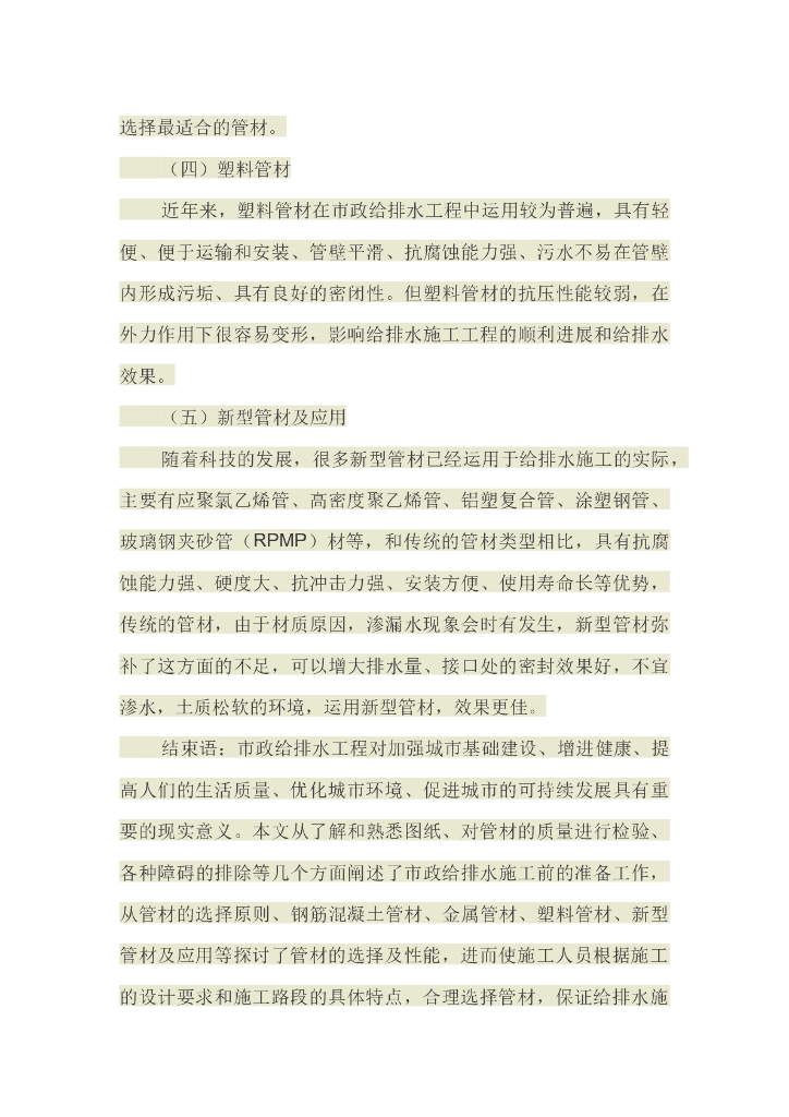 关于市政给排水施工准备及管道材质的探讨探述.doc