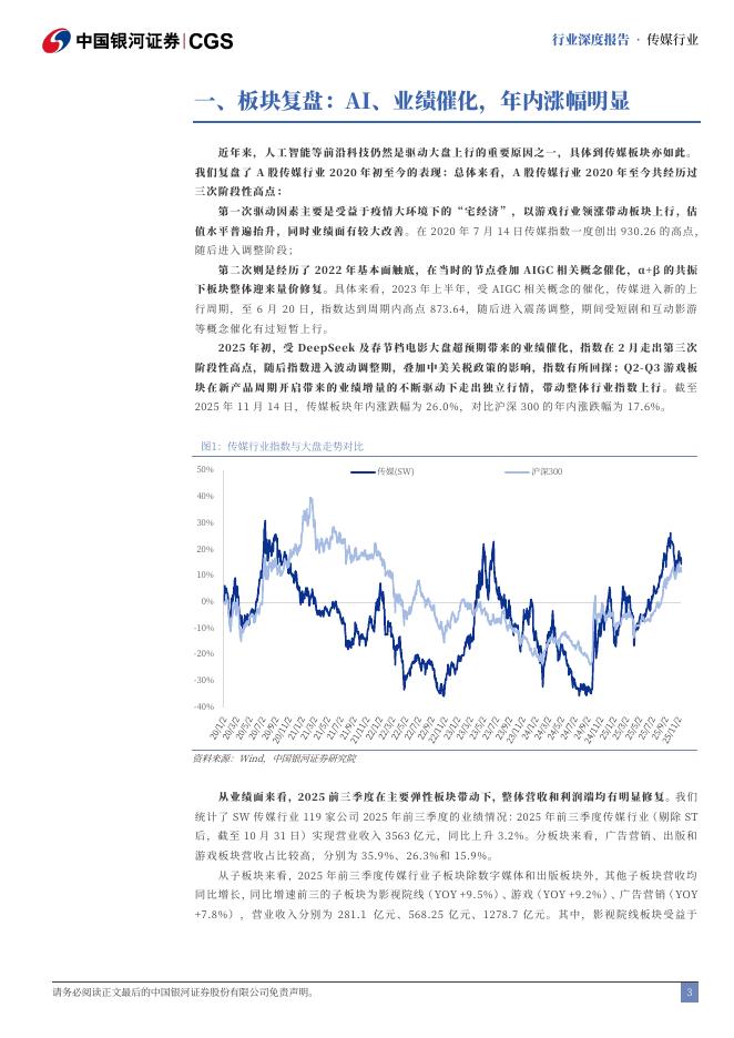 东吴证券:传媒行业深度报告:25Q3业绩综述:利润同比增长40%,游戏板块增长亮眼