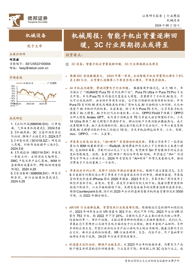 德邦证券:机械周报:智能手机出货量逐渐回暖,3C行业周期拐点或将至.pdf