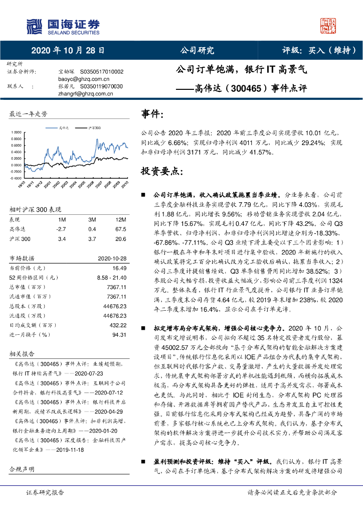 国海证券:高伟达(300465)-事件点评:公司订单饱满,银行IT高景气.pdf