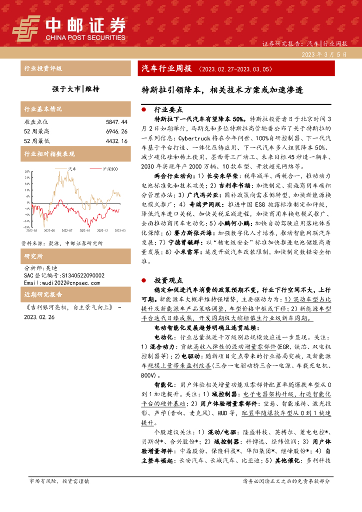 中邮证券:汽车行业周报:特斯拉引领降本,相关技术方案或加速渗透.pdf