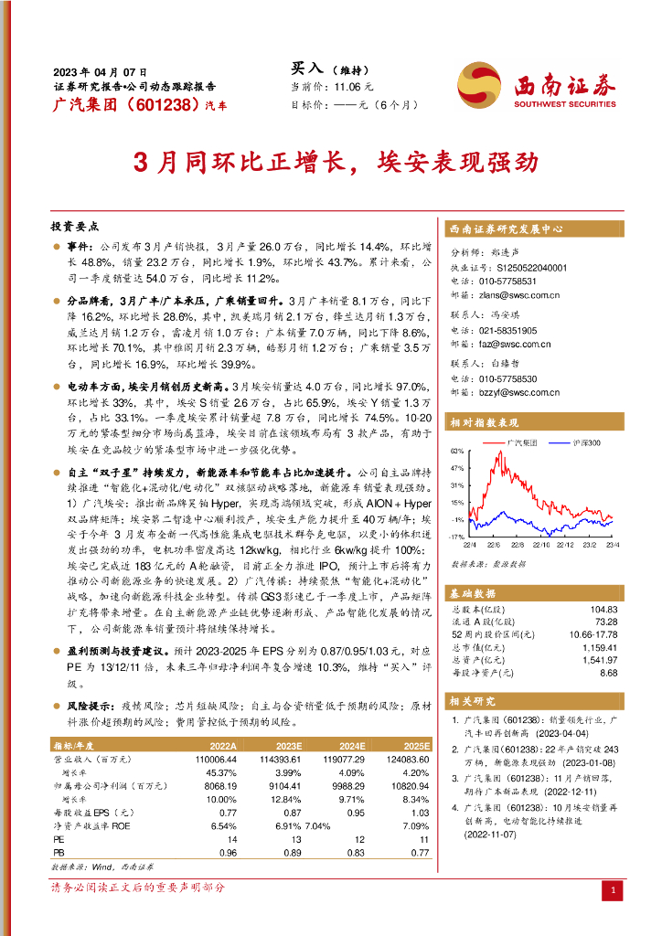 西南证券:广汽集团(601238)-3月同环比正增长,埃安表现强劲.pdf