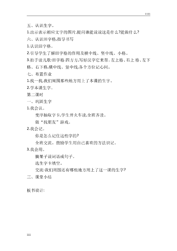 一年级语文(教案3)识字1 天地人教学设计.doc