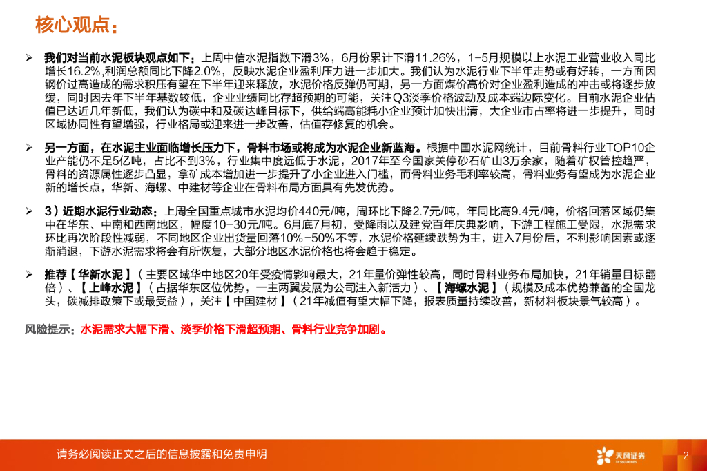 天风证券:水泥制造行业研究周报:7月需求或有恢复,水泥价格有望企稳.pdf
