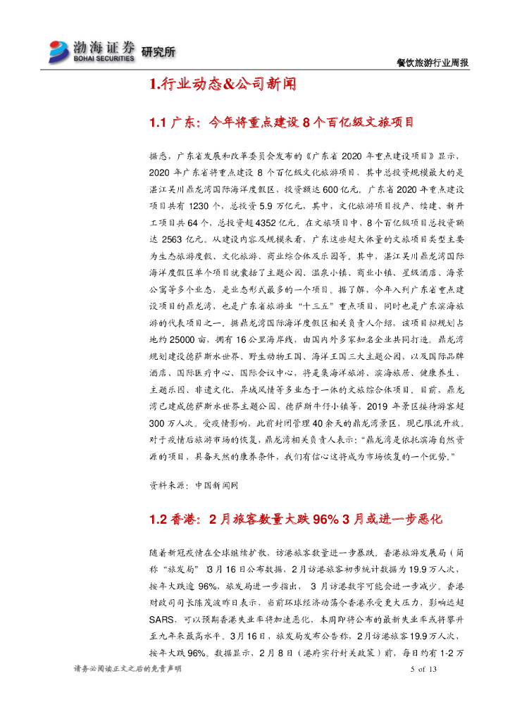 渤海证券:餐饮旅游行业周报:景区进一步恢复开放 关注疫情进展及行业拐点.pdf