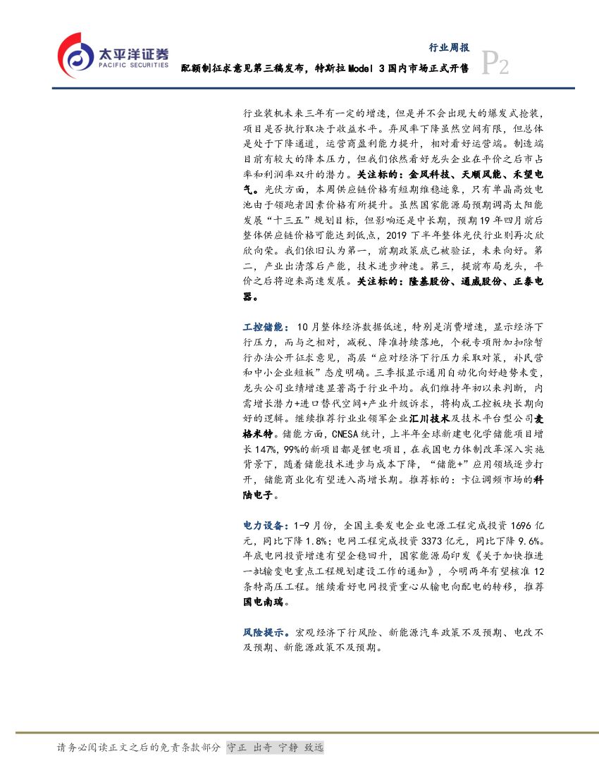 太平洋证券:电气设备行业周报:配额制征求意见第三稿发布,特斯拉Model3国内市场正式开售.pdf