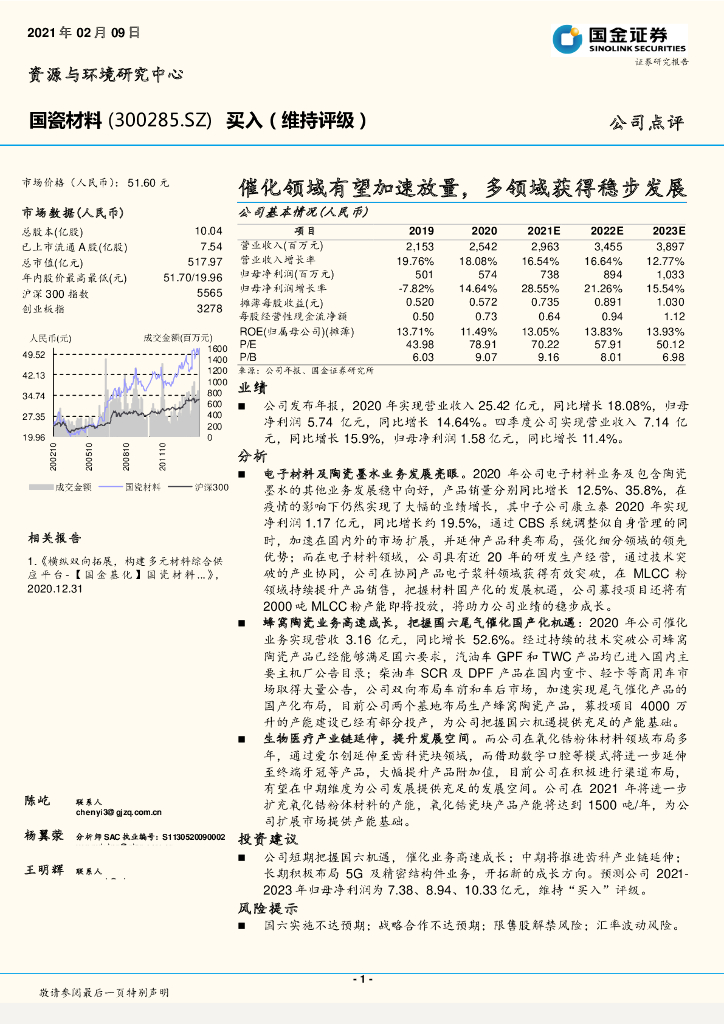 国金证券:国瓷材料(300285)-催化领域有望加速放量,多领域获得稳步发展.pdf