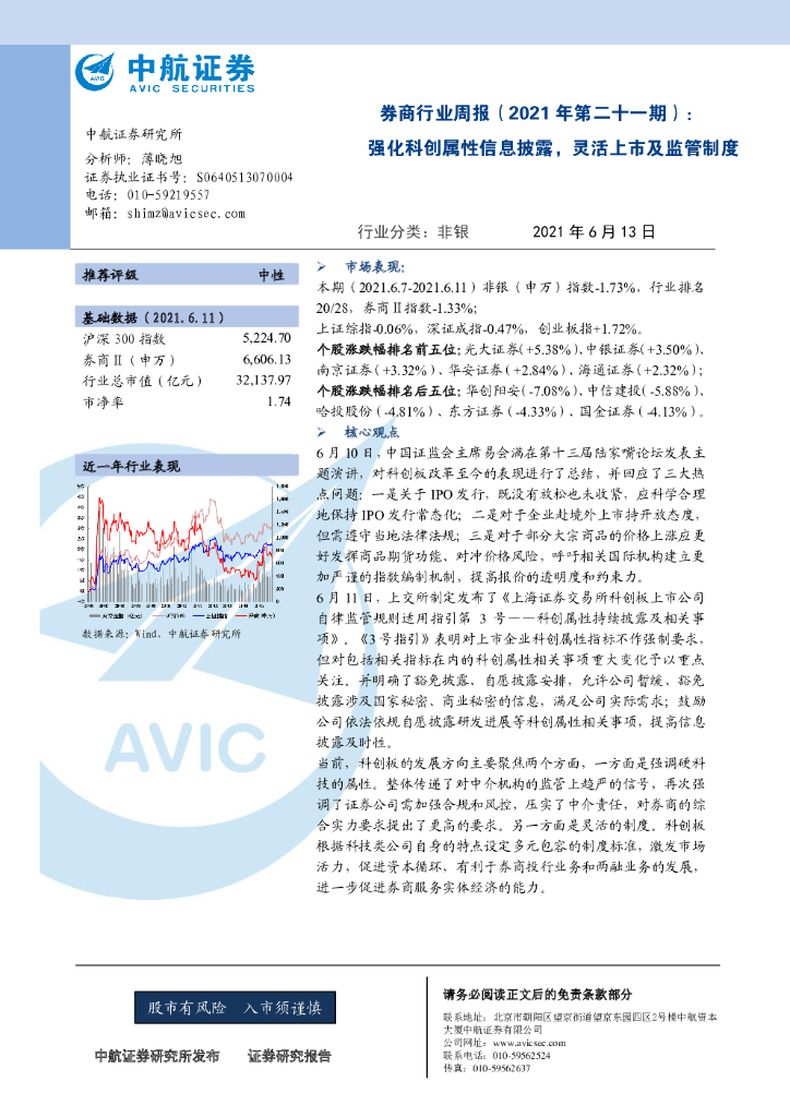 中航证券:券商行业周报(2021年第二十一期):强化科创属性信息披露,灵活上市及监管制度.pdf