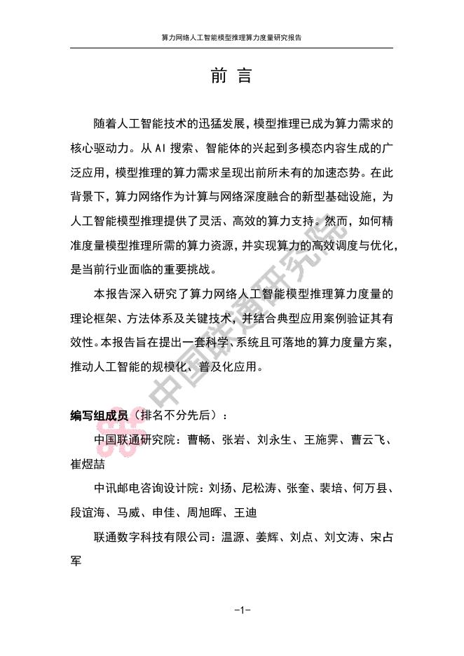 中国联通:2025年算力网络人工智能模型推理算力度量研究报告.pdf