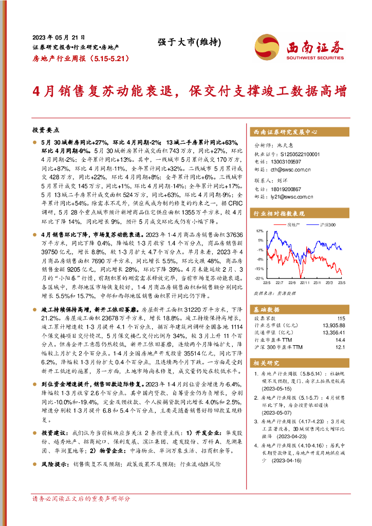 西南证券:房地产行业周报:4月销售复苏动能衰退,保交付支撑竣工数据高增.pdf