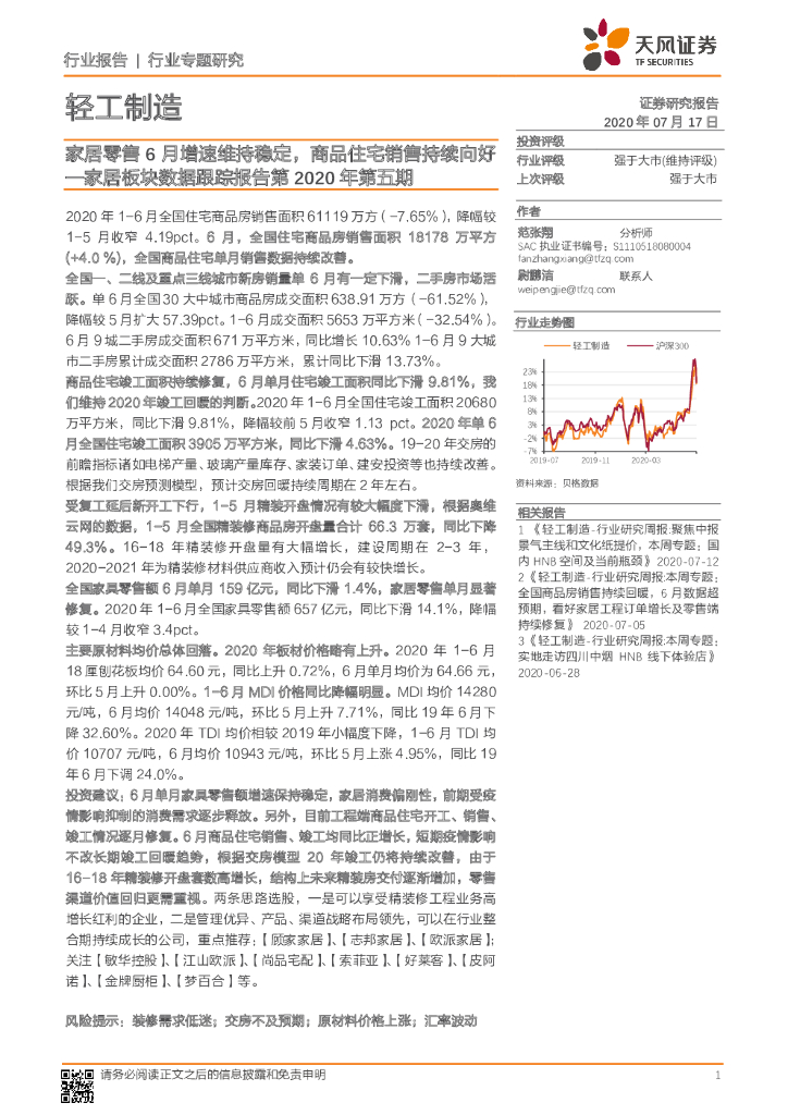 天风证券:家居板块数据跟踪报告第2020年第五期:家居零售6月增速维持稳定,商品住宅销售持续向好.pdf