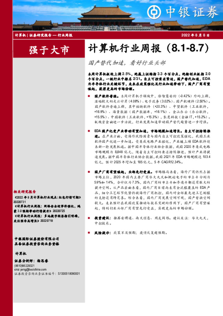 中银证券:计算机行业周报:国产替代加速,看好行业头部.pdf