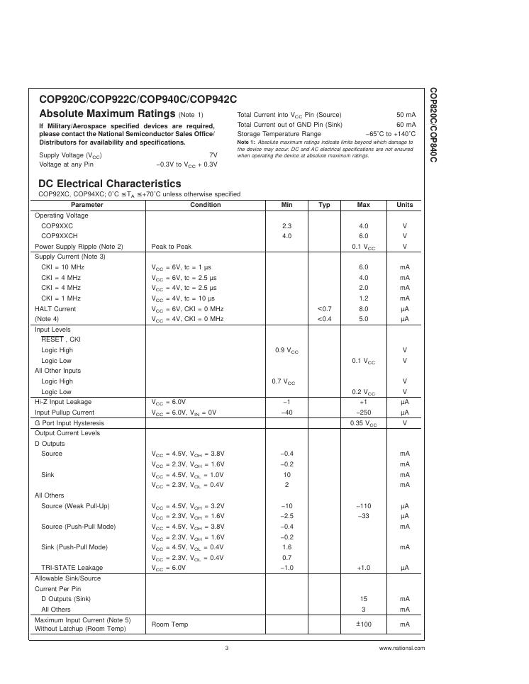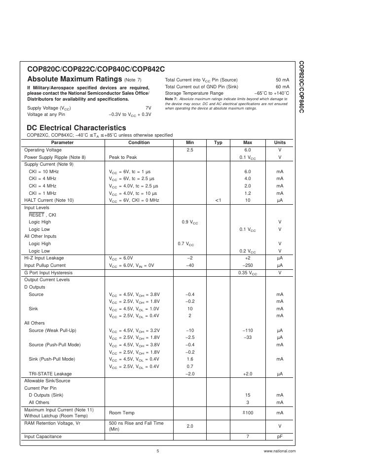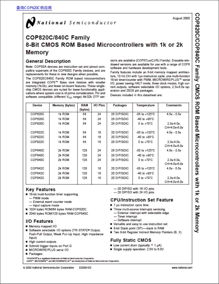 National semiconductor COP820C/840C Family 数据手册.pdf