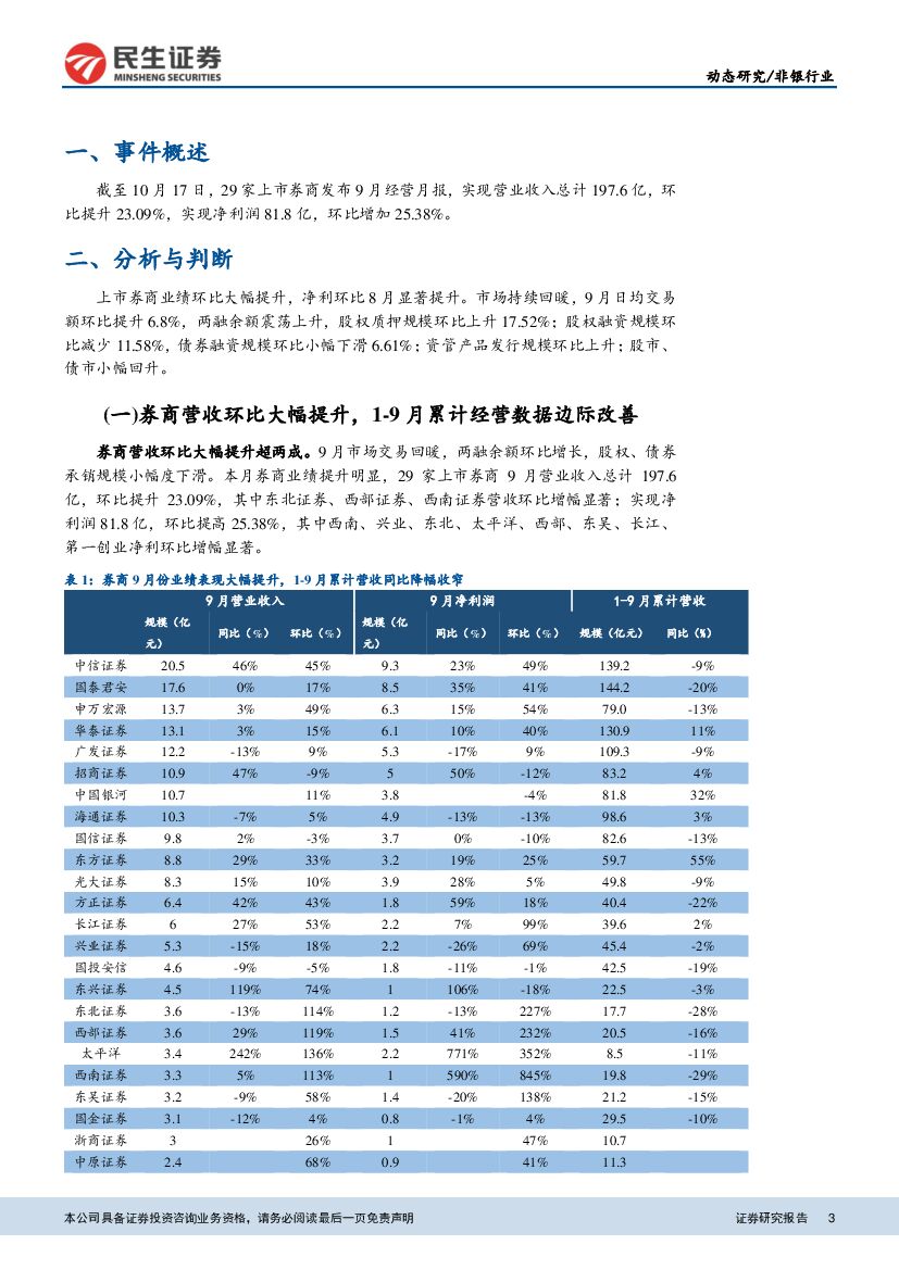 民生证券:非银行业:券商业绩环比高增,三季报业绩可期.pdf