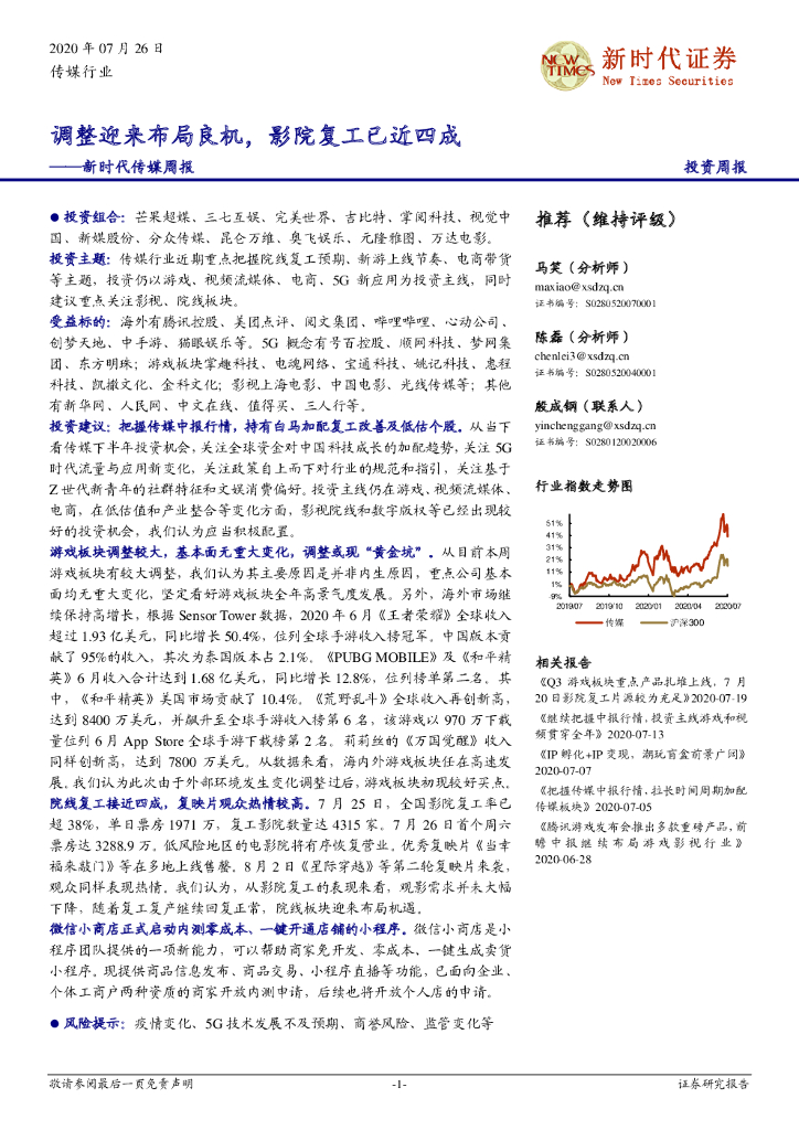 新时代证券:新时代传媒周报:调整迎来布局良机,影院复工已近四成.pdf