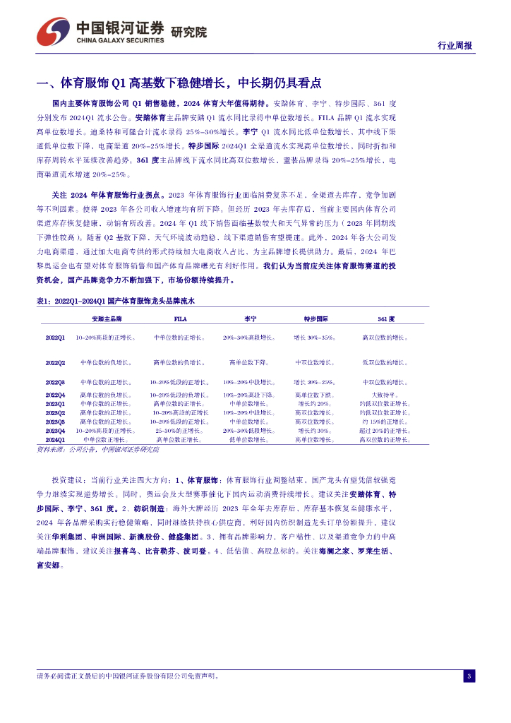 中国银河:纺织服饰行业周报:体育服饰Q1高基数下稳健增长,中长期仍具看点.pdf