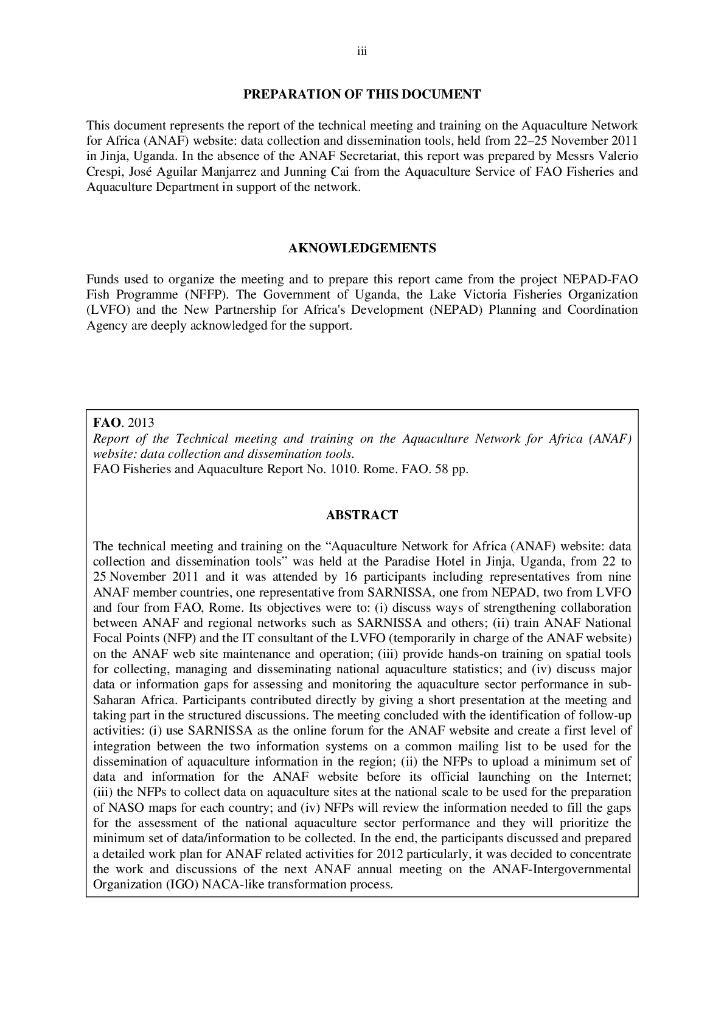 FAO联合国粮农组织:非洲水产养殖网络(ANAF)网站:数据收集和传播工具技术会议和培训报告(金贾,2011年11月22日至25日)(英文版).pdf
