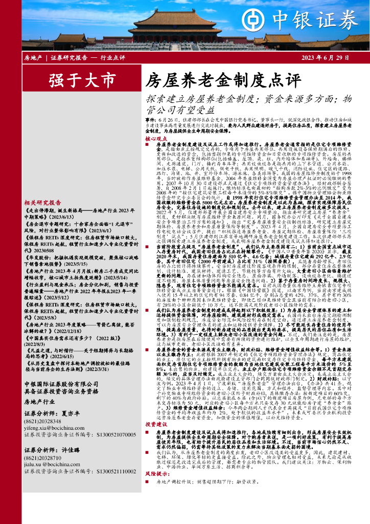 中银证券:房屋养老金制度点评:探索建立房屋养老金制度;资金来源多方面;物管公司有望受益.pdf
