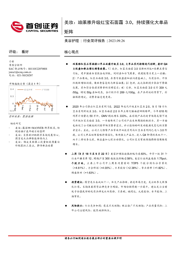 首创证券:美容护理行业简评报告:美妆:珀莱雅升级红宝石面霜3.0,持续强化大单品矩阵.pdf