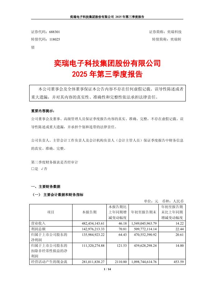 118025-奕瑞科技:奕瑞科技2025年第三季度报告.pdf