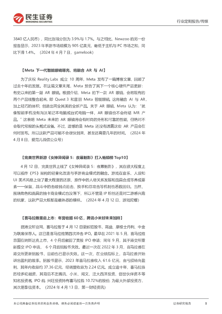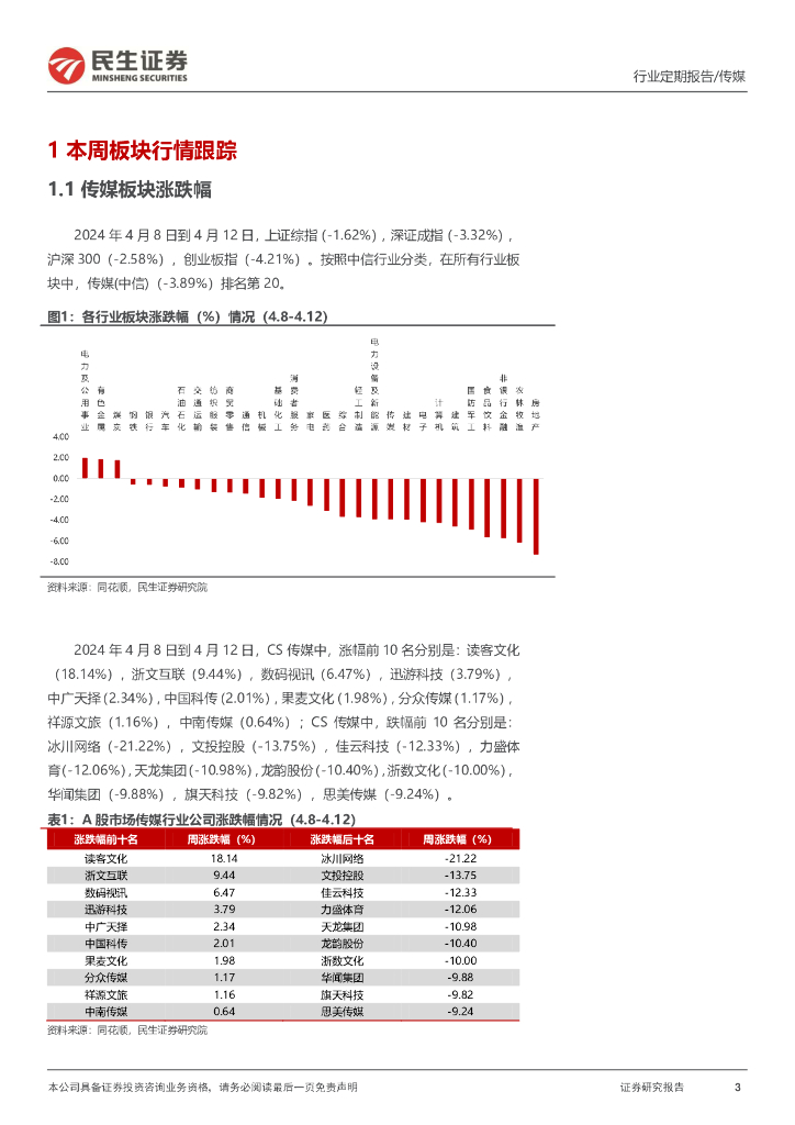 民生证券:传媒互联网行业周报:本周观点:国产大模型持续迭新,AI应用产品体验持续优化。重视AI产业线相关催化演绎。同时财报季关注重点公司财报表现。2024年4月9日,阶跃星辰宣布全面开放AI效率工具“跃问”(StepChat)。.pdf