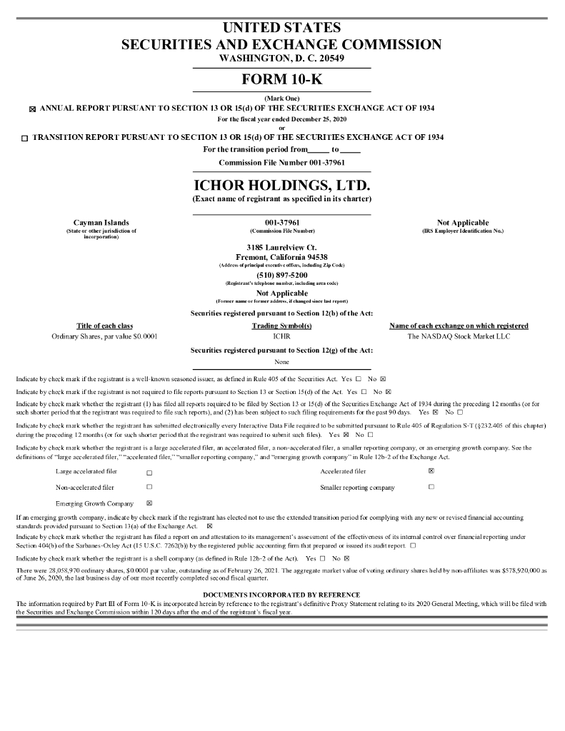 Ichor Holdings Ltd(ICHR)2020财年年度报告(英文版).pdf