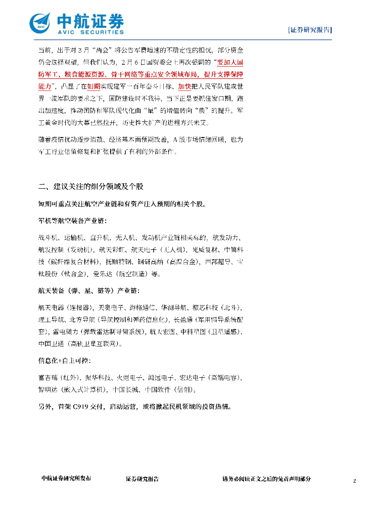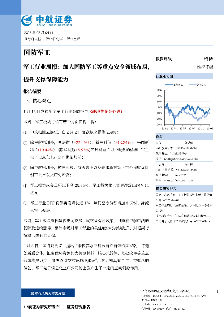 中航证券:军工行业周报:加大国防军工等重点安全领域布局,提升支撑保障能力.pdf
