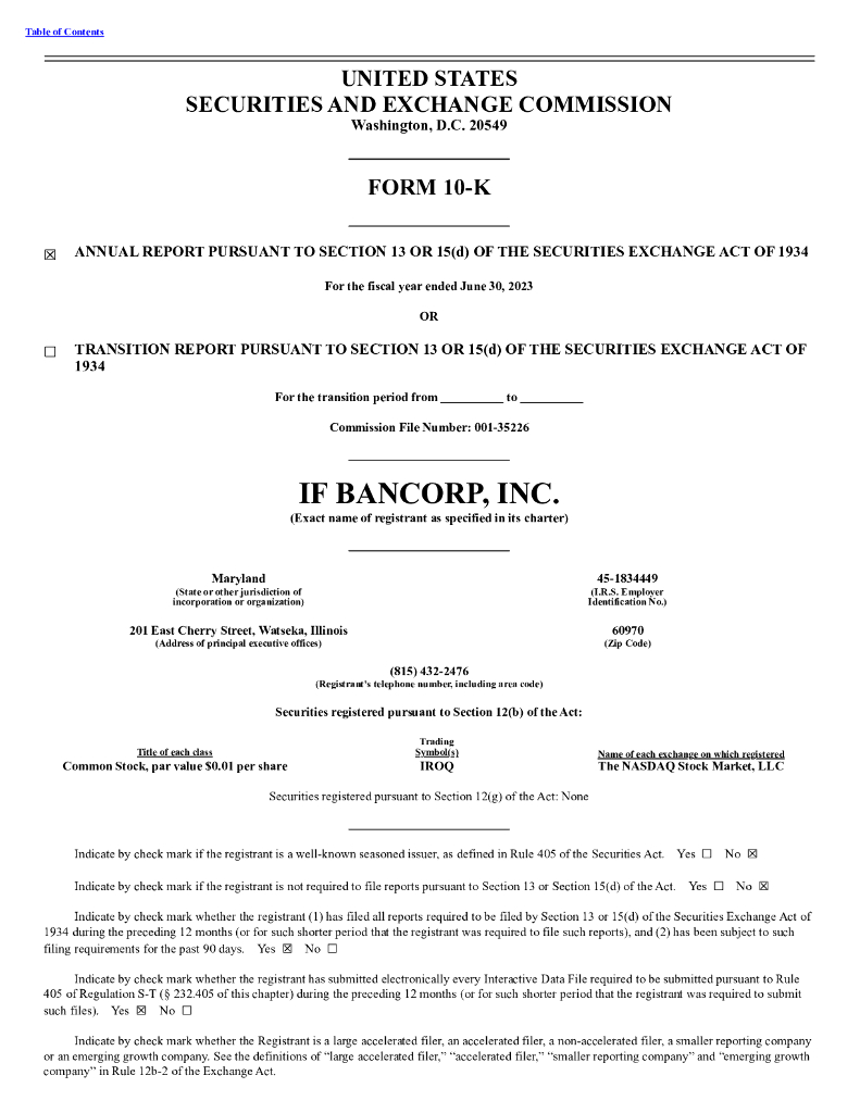 IF Bancorp, Inc.(IROQ)2023财年年度报告(英文版).pdf