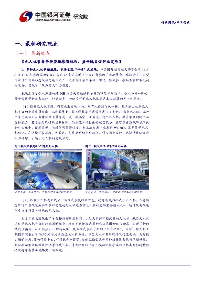 中国银河:军工行业周报:无人机装备争艳登场珠海航展,盛世瞩目促行业发展.pdf