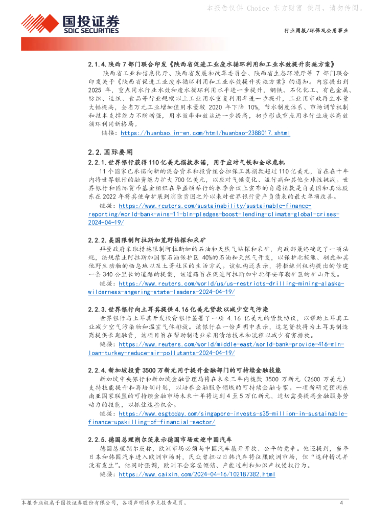 国投证券:环保及公用事业行业周报:世界银行获110亿美元捐款承诺,用于应对气候和全球危机.pdf