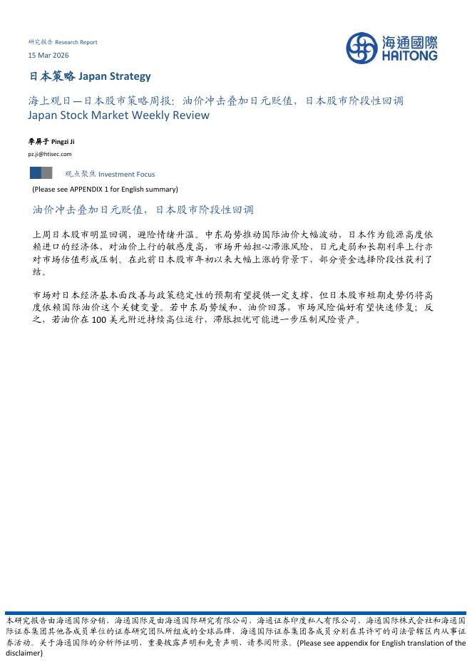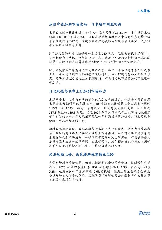 海通国际:海上观日—日本股市策略周报:油价冲击叠加日元贬值,日本股市阶段性回调-260316.pdf