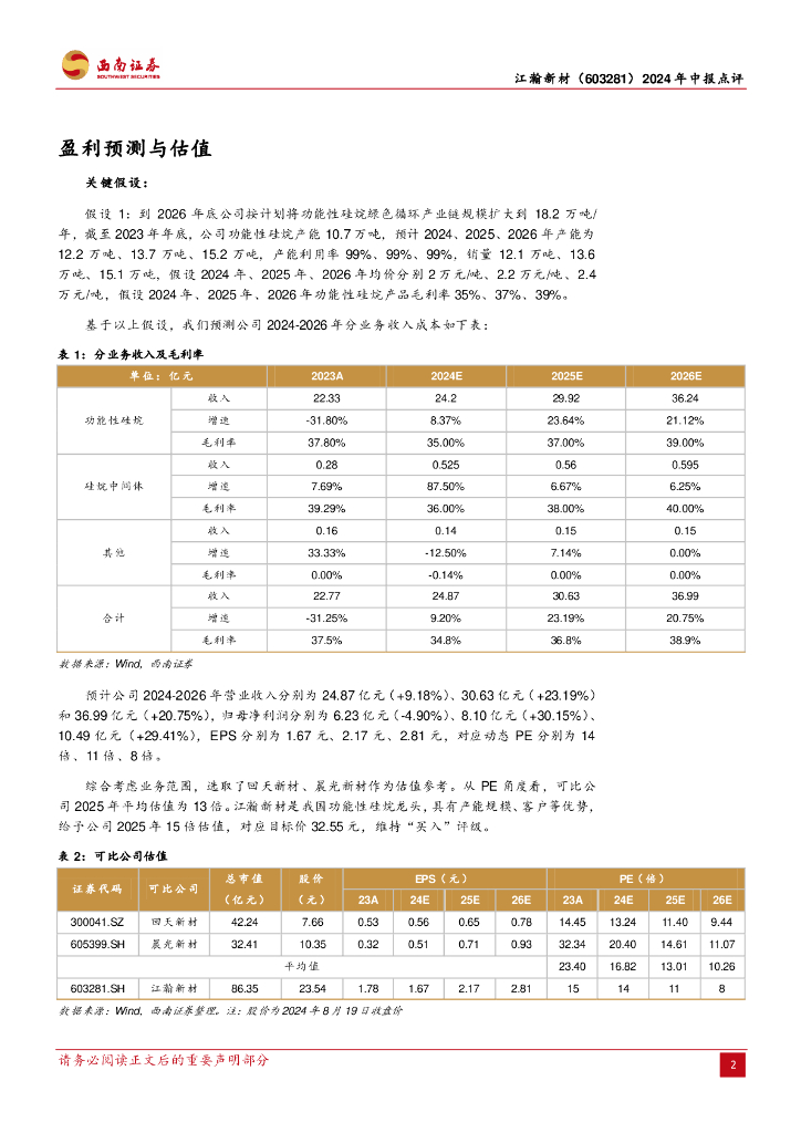西南证券:江瀚新材(603281)-产销大幅增长,静待行业景气回升.pdf