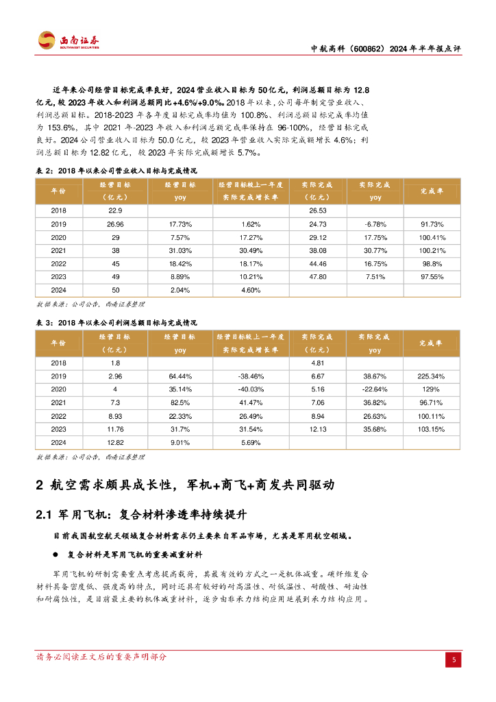 西南证券:中航高科(600862)-2024年半年报点评:稳步向上,军机+商飞+商发支撑长期成长.pdf