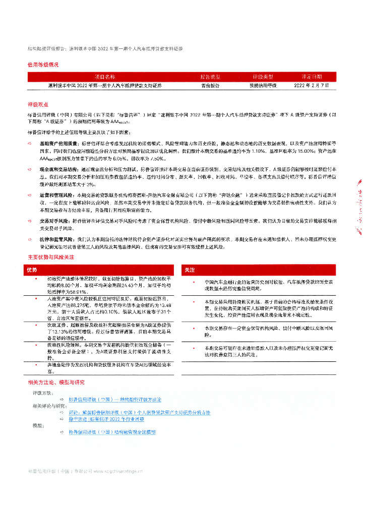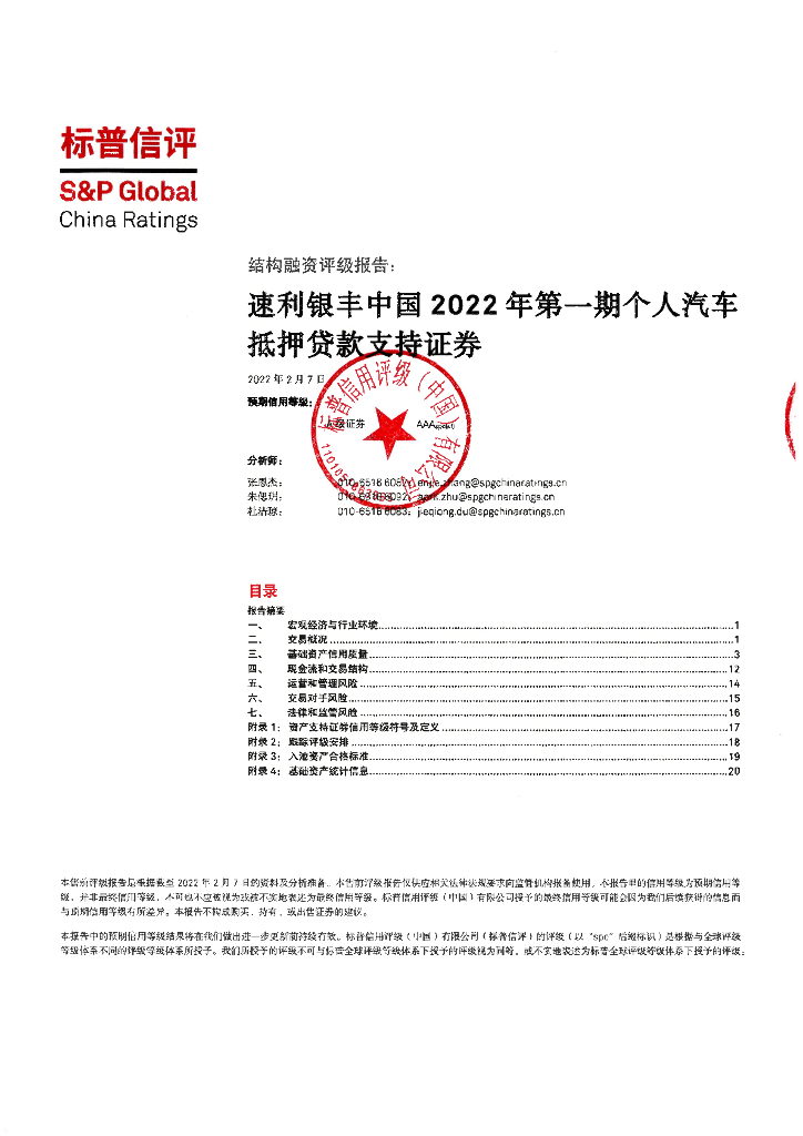 标普信评:速利银丰中国2022年第一期个人汽车抵押贷款支持证券信用评级报告.pdf