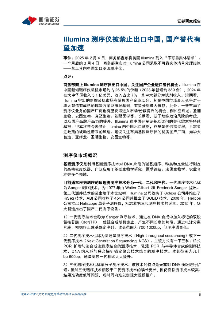 国信证券:医药生物行业周报(25年第10周):Illumina被禁止向中国出口测序仪,国产替代有望加速.pdf