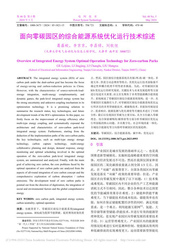 葛磊蛟:面向零碳园区的综合能源系统优化运行技术综述.pdf