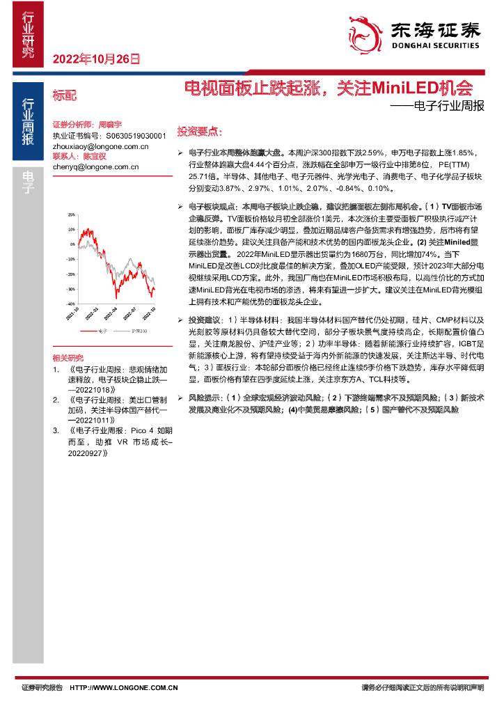 东海证券:电子行业周报:电视面板止跌起涨,关注MiniLED机会.pdf