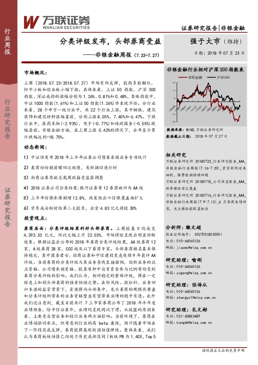 万联证券:非银金融周报:分类评级发布,头部券商受益.pdf